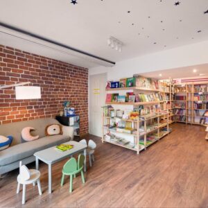 Este printre cele mai frumoase librării pentru copii din București, cu spatii generoase amenajate atât pentru joacă cât și pentru copii.