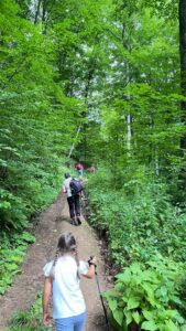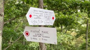 Am urmat bulina roșie în jur de 4 km în urcare și după o porțiune bună de urcat am ajuns într-o pădure răcoroasă cu teren plan, moment tocmai bun să ne tragem sufletul. După încă 1 km am ajuns în poiana cu mulți fluturi și din acest punct am continuat traseul în coborâre 1 km înconjurați de fluturii ce „ieșeau” din bagheta magică a Ghidușei.