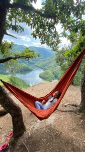 Am ajuns într-un final la destinație unde am făcut o pauză mai mare. Ghidușa s-a instalat în hamac unde a și ațipit puțin, iar noi pe lângă ea admirând peisajul ce ne-a tăiat respirația.
